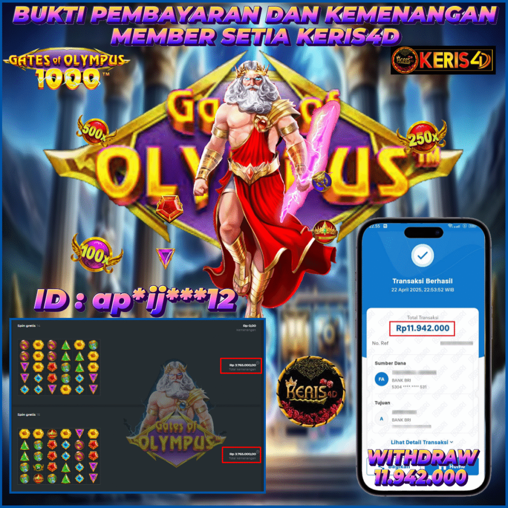 KERIS4D dikenal sebagai situs terpercaya yang selalu menghadirkan pengalaman bermain slot online yang aman, fair, dan berlisensi resmi. Di sini, kami tidak hanya sekadar memberikan janji, tapi bukti nyata berupa slip kemenangan yang dapat Anda lihat secara langsung.