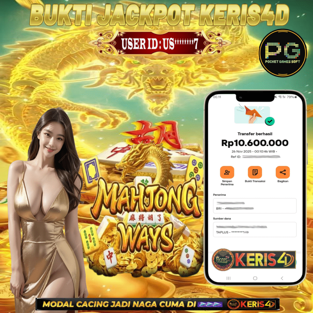 KERIS4D dikenal sebagai situs terpercaya yang selalu menghadirkan pengalaman bermain slot online yang aman, fair, dan berlisensi resmi. Di sini, kami tidak hanya sekadar memberikan janji, tapi bukti nyata berupa slip kemenangan yang dapat Anda lihat secara langsung.