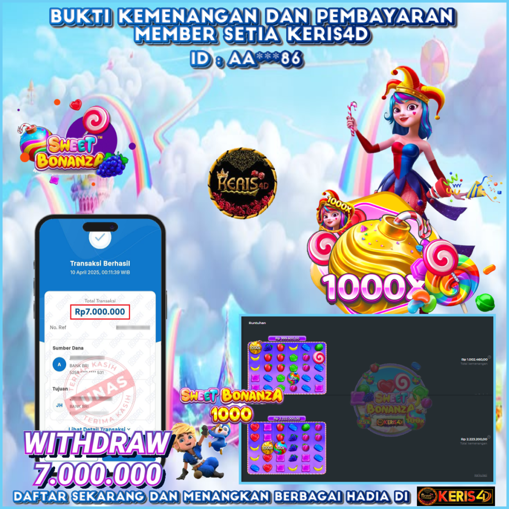 KERIS4D dikenal sebagai situs terpercaya yang selalu menghadirkan pengalaman bermain slot online yang aman, fair, dan berlisensi resmi. Di sini, kami tidak hanya sekadar memberikan janji, tapi bukti nyata berupa slip kemenangan yang dapat Anda lihat secara langsung.