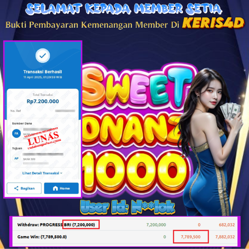 Setiap hari, member KERIS4D berhasil meraih jackpot besar dari berbagai provider slot ternama yang kami sediakan, seperti Pragmatic Play, Habanero, PG Soft, dan masih banyak lagi. Kami secara rutin menampilkan bukti screenshot atau rekapan kemenangan yang berhasil diraih, mulai dari kemenangan ratusan ribu hingga puluhan juta rupiah. Semua slip kemenangan ini kami hadirkan untuk membuktikan bahwa di KERIS4D, peluang menang itu nyata.