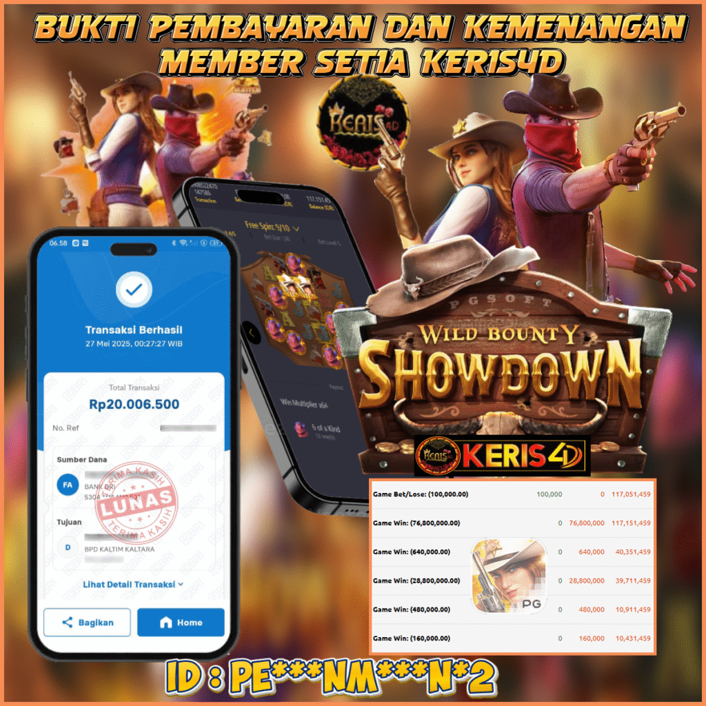 KERIS4D dikenal sebagai situs terpercaya yang selalu menghadirkan pengalaman bermain slot online yang aman, fair, dan berlisensi resmi. Di sini, kami tidak hanya sekadar memberikan janji, tapi bukti nyata berupa slip kemenangan yang dapat Anda lihat secara langsung.